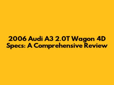 Hey guys! Let's dive deep into the 2006 Audi A3 2.0T Wagon 4D, a vehicle that blends practicality with Audi's signature style and performance. If you're considering a used car that offers a bit of everything, this wagon might just be the ticket. We're going to cover everything from its engine specs to its interior features, ensuring you have a complete picture before making any decisions.