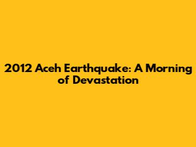 2012 Aceh Earthquake: A Morning Of Devastation