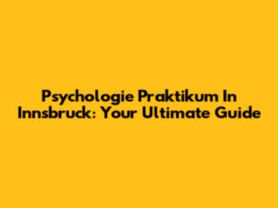 Psychologie Praktikum In Innsbruck: Your Ultimate Guide