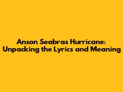 Hey music lovers! Ever gotten a song stuck in your head that just… hits? Well, if you're anything like me, Anson Seabra's "Hurricane" has probably been on repeat. This track is more than just a catchy tune; it's a deep dive into emotions, relationships, and the chaos that can sometimes feel like a storm within. So, grab your headphones, and let's dissect the lyrics, explore the meaning, and maybe even find a piece of ourselves in this musical masterpiece.