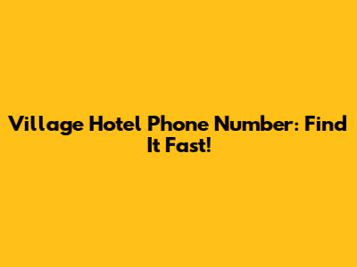 Village Hotel Phone Number: Find It Fast!