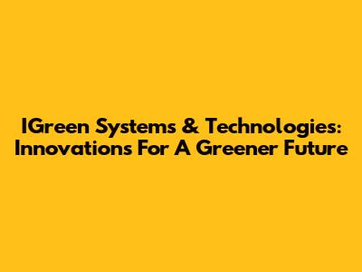 IGreen Systems & Technologies: Innovations For A Greener Future