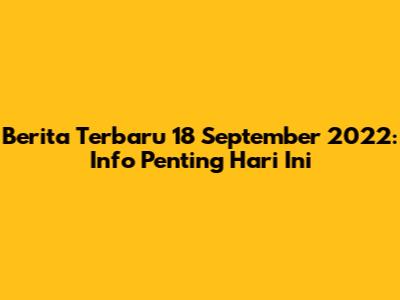 Berita Terbaru 18 September 2022: Info Penting Hari Ini
