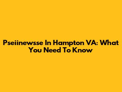 Pseiinewsse In Hampton VA: What You Need To Know