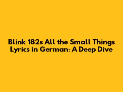 Hey guys! So, you're digging into the iconic track "All the Small Things" by Blink 182, and you're curious about the German lyrics, huh? That's awesome! This song is an absolute banger, a total throwback to the early 2000s pop-punk scene that pretty much defined a generation. It's catchy, it's fun, and it's got that signature Blink 182 vibe that makes you want to jump around and sing along at the top of your lungs. But what happens when you want to explore it in a different language? Well, that's where the German translation comes in, and let me tell you, it adds a whole new layer to the experience. We're going to break down the German lyrics, see how they capture the essence of the original, and maybe even learn a thing or two about the nuances of translating such a beloved song. So, buckle up, grab your air guitar, and let's get this party started! It’s always cool to see how music transcends borders and languages, and this track is a perfect example. We’re talking about a song that was massive, topping charts and becoming a staple on radio stations worldwide. Its infectious energy and relatable themes of relationships, even the quirky, everyday stuff, resonated with so many people. Now, imagine that same feeling, that same infectious rhythm, but in German. It’s a journey, for sure, and one that’s totally worth taking if you’re a fan of the band or just love exploring music in different tongues. We’ll be looking at specific lines, trying to understand the choices made by translators, and really getting into the heart of what makes this song so special, both in English and in its German rendition. So, let’s dive deep into the translation and see what we discover together. Get ready to have "All the Small Things" stuck in your head, but this time, with a German twist!