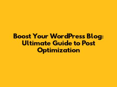 Boost Your WordPress Blog: Ultimate Guide To Post Optimization