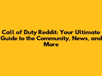 Call Of Duty Reddit: Your Ultimate Guide