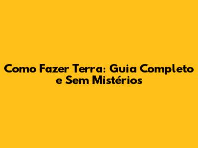 Como Fazer Terra: Guia Completo E Sem Mistérios