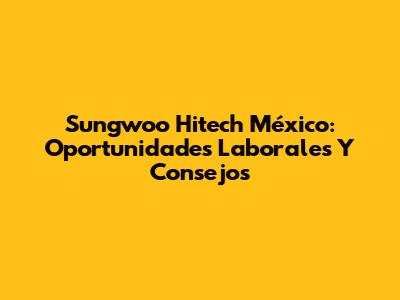 Sungwoo Hitech México: Oportunidades Laborales Y Consejos