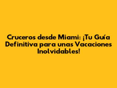 ¡Hola, cruceristas! Si estás buscando una escapada emocionante y llena de sol, ¡has llegado al lugar correcto! En este artículo, te vamos a sumergir en el fascinante mundo de los cruceros desde Miami, la puerta de entrada a unas vacaciones espectaculares. Te daremos los mejores consejos para encontrar ofertas de última hora, te mostraremos los destinos más populares y te ayudaremos a planificar el crucero perfecto. ¡Prepárate para zarpar!