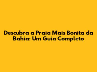 Descubra A Praia Mais Bonita Da Bahia: Um Guia Completo