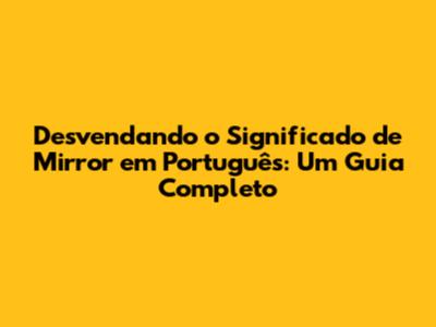 Desvendando O Significado De Mirror Em Português: Um Guia Completo