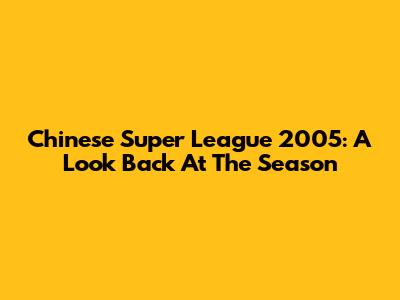 Chinese Super League 2005: A Look Back At The Season