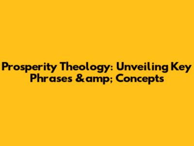 Prosperity Theology: Unveiling Key Phrases & Concepts