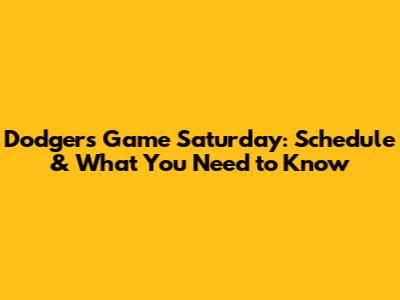 Dodgers Game Saturday: Schedule & What You Need To Know