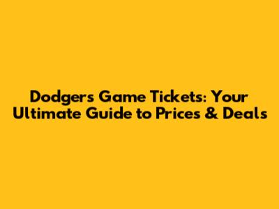 Dodgers Game Tickets: Your Guide To Prices & Deals!