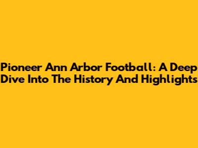 Pioneer Ann Arbor Football: A Deep Dive Into The History And Highlights