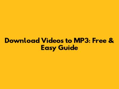 Download Videos To MP3: Free & Easy Guide