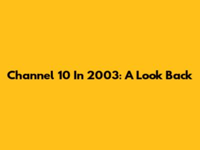 Channel 10 In 2003: A Look Back