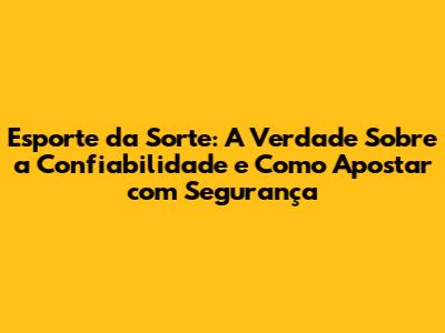 Esporte da Sorte é Confiável? Análise Detalhada da Plataforma