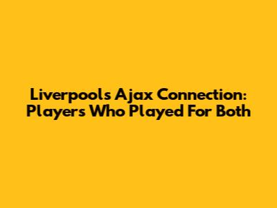 Liverpool's Ajax Connection: Players Who Played For Both