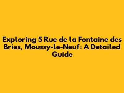 Hey guys! Ever wondered about the charm of 5 Rue de la Fontaine des Bries in the lovely town of Moussy-le-Neuf? Well, buckle up, because we're about to dive deep into everything you need to know about this address. From its location to what makes it tick, we'll cover it all. Whether you're a local, a potential resident, or just plain curious, this guide is for you. Let's get started, shall we?