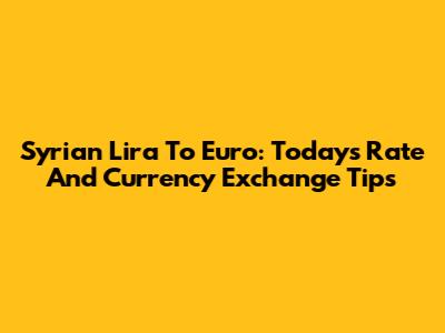 Syrian Lira To Euro: Today's Rate And Currency Exchange Tips