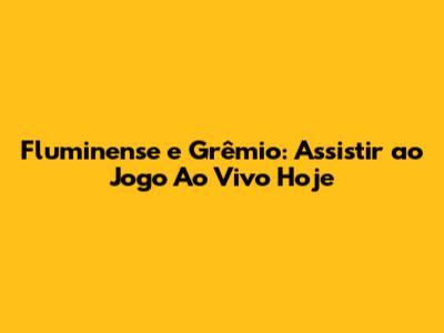 Fluminense Vs Grêmio: Assistir Ao Jogo Ao Vivo Hoje