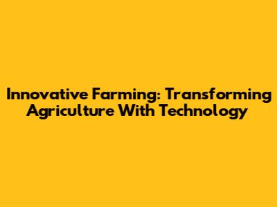 Innovative Farming: Transforming Agriculture With Technology