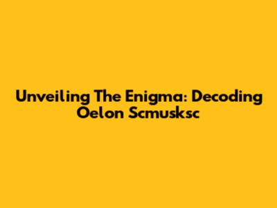 Unveiling The Enigma: Decoding Oelon Scmusksc
