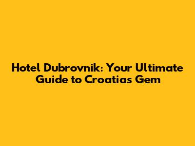 Hotel Dubrovnik: Your Ultimate Guide To Croatia's Gem