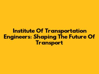 Institute Of Transportation Engineers: Shaping The Future Of Transport