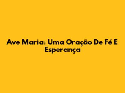 Ave Maria: Uma Oração De Fé E Esperança