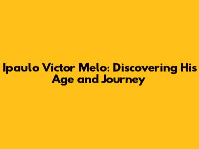 Let's dive into the life of Ipaulo Victor Melo, exploring his age and the journey that has shaped him. Knowing someone's age is just a tiny piece of their story, but it often sparks curiosity and leads us to discover so much more. Who is Ipaulo Victor Melo, and what makes his journey unique?