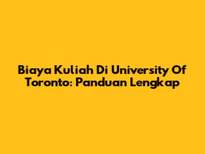 Biaya Kuliah Di University Of Toronto: Panduan Lengkap