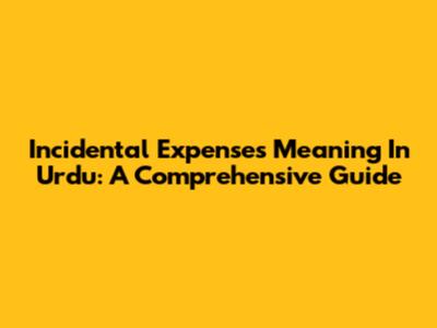 Incidental Expenses Meaning In Urdu: A Comprehensive Guide