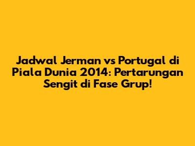Hey guys! Siapa yang masih inget serunya Piala Dunia 2014? Turnamen sepak bola paling bergengsi sejagat raya ini emang selalu punya cerita menarik. Salah satunya adalah pertandingan antara Jerman vs Portugal. Pertandingan ini bukan cuma sekadar perebutan poin di fase grup, tapi juga jadi ajang pembuktian kekuatan dua tim raksasa Eropa. Nah, kali ini kita bakal nostalgia sekaligus ngulik lebih dalam tentang jadwal, jalannya pertandingan, dan segala hal menarik seputar laga seru ini. Siap-siap bernostalgia dan merasakan lagi euforia Piala Dunia 2014!