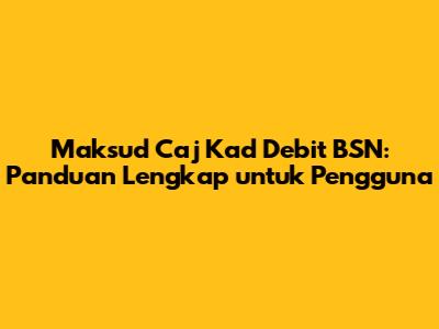Maksud Caj Kad Debit BSN: Panduan Lengkap Untuk Pengguna