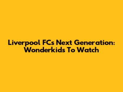Liverpool FC's Next Generation: Wonderkids To Watch