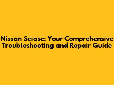 Hey there, car enthusiasts! Ever found yourself scratching your head over a problem with your Nissan Seiase? Don't worry, you're in the right place! This guide is your go-to resource for everything related to Nissan Seiase repair. We'll dive deep into common issues, how to troubleshoot them, and what you can do to get your Seiase back on the road. Whether you're a seasoned mechanic or just starting out, this guide aims to provide you with the knowledge and confidence to tackle any challenge your Seiase throws your way. Let's get started, shall we?