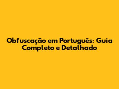 Obfuscação Em Português: Guia Completo E Detalhado