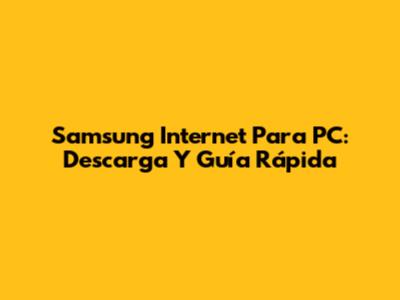 Samsung Internet Para PC: Descarga Y Guía Rápida