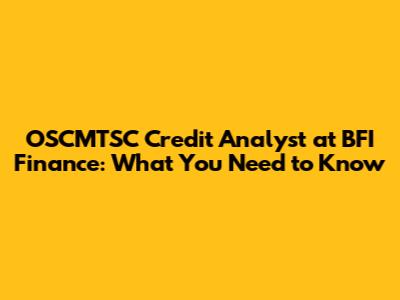 OSCMTSC Credit Analyst At BFI Finance: What You Need To Know