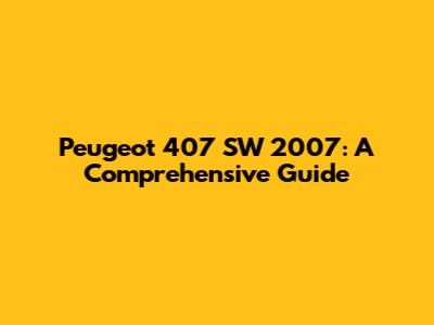 Hey car enthusiasts! Today, we're diving deep into the Peugeot 407 SW 2007, a vehicle that has a special place in the hearts of many. This article is your ultimate guide, covering everything from its features and performance to potential issues and how to keep it running smoothly. Whether you're a current owner, considering buying one, or just curious, stick around! We'll explore what makes the Peugeot 407 SW 2007 stand out. Let's get started!