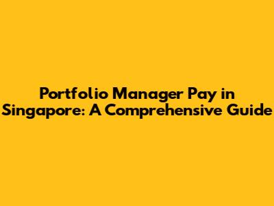 Portfolio Manager Pay In Singapore: A Comprehensive Guide