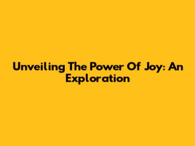 Unveiling The Power Of Joy: An Exploration