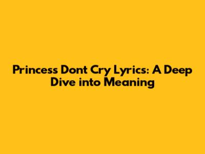 Princess Don't Cry Lyrics: A Deep Dive Into Meaning