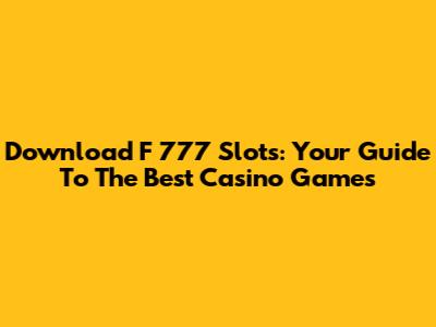 Download F 777 Slots: Your Guide To The Best Casino Games