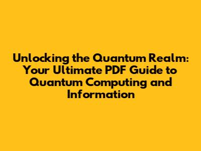 Alright, so you’re intrigued, right? You want to learn more, and you’re probably wondering, “Where can I get my hands on some solid information?” That’s where a good quantum computing and quantum information PDF comes in handy, guys! In a field that’s moving at lightning speed, having reliable, downloadable resources is a lifesaver. PDFs are fantastic because you can download them, read them offline, and mark them up to your heart’s content. They’re perfect for diving deep into the technical details without being tethered to an internet connection.