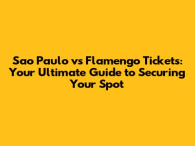Sao Paulo Vs Flamengo Tickets: Get Yours Now!